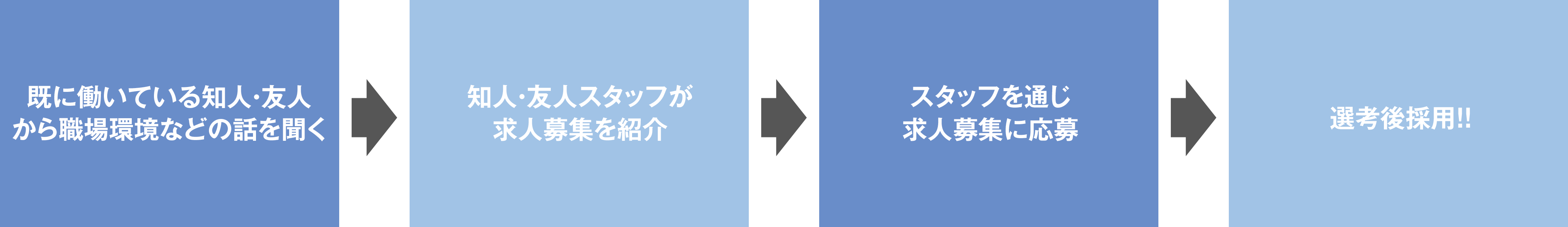 このリファラル採用は、転職を検討している知人や友達が、当社のスタッフを通じて、アイリストとしての職場環境や社風、雇用条件などの情報を得ることができ、当社で働きたいという気持ちを抱いてくださった方に、知人や友達を通じて応募していただくものです。